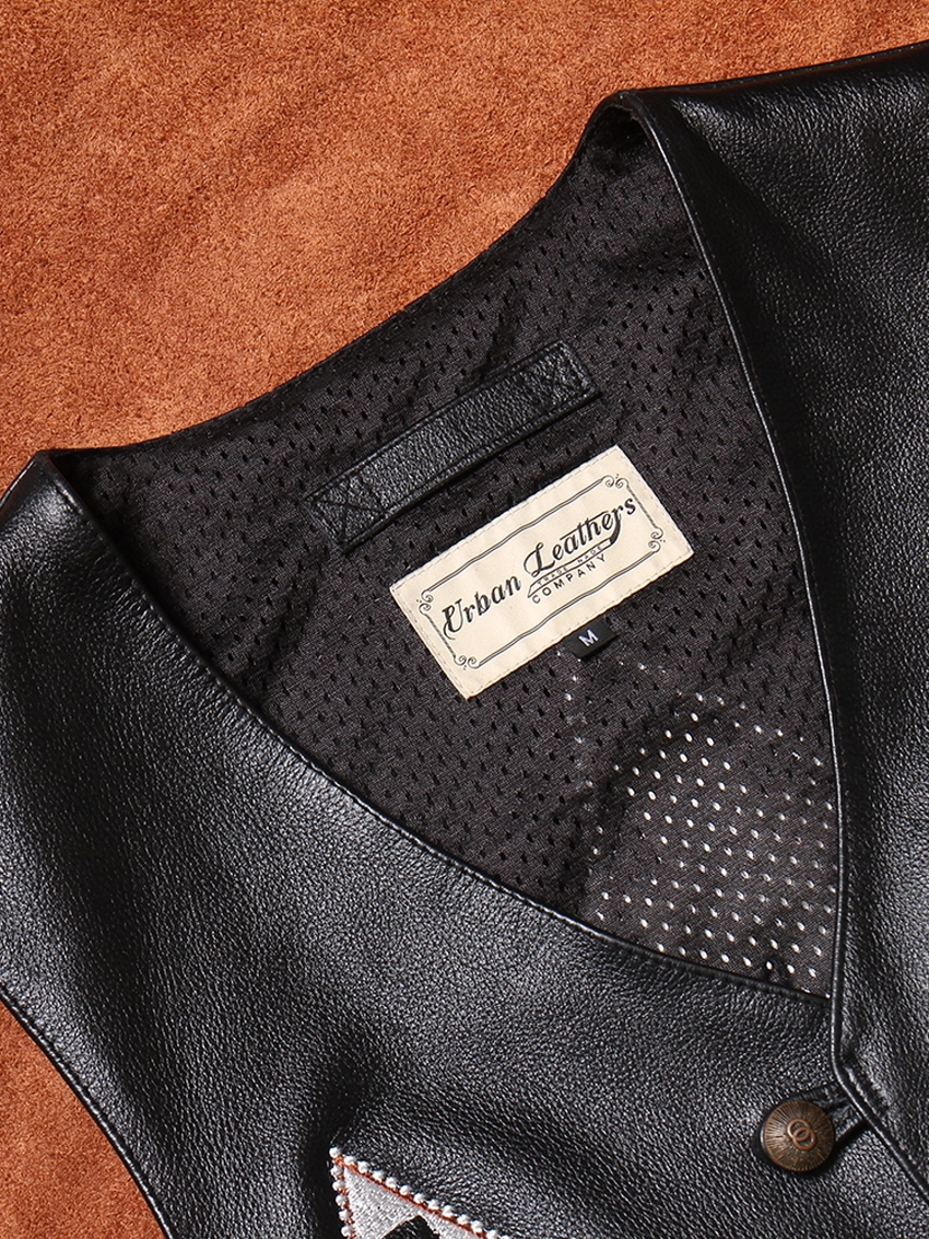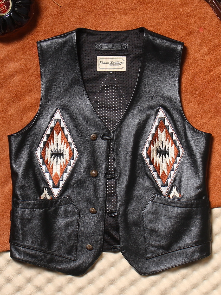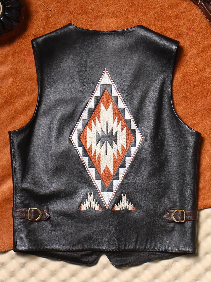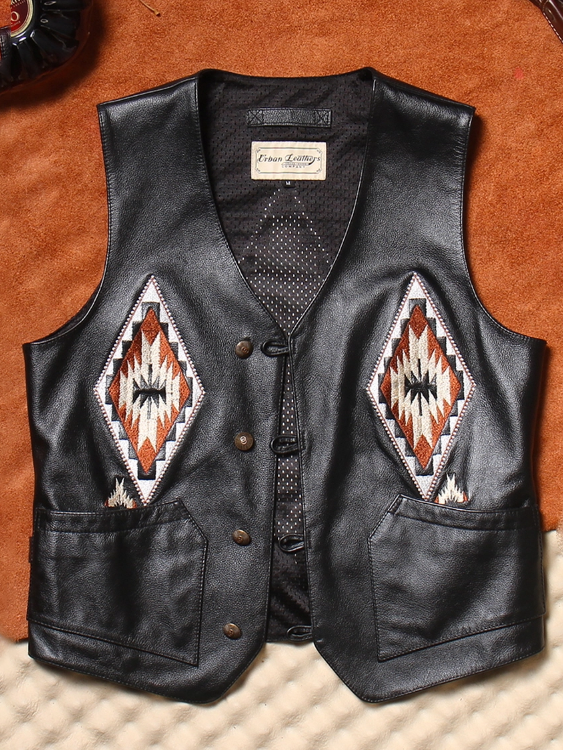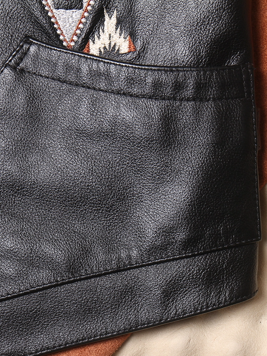 • 나바호 자수 패턴이 더해진 빈티지 무드의 카우하이드 베스트입니다.